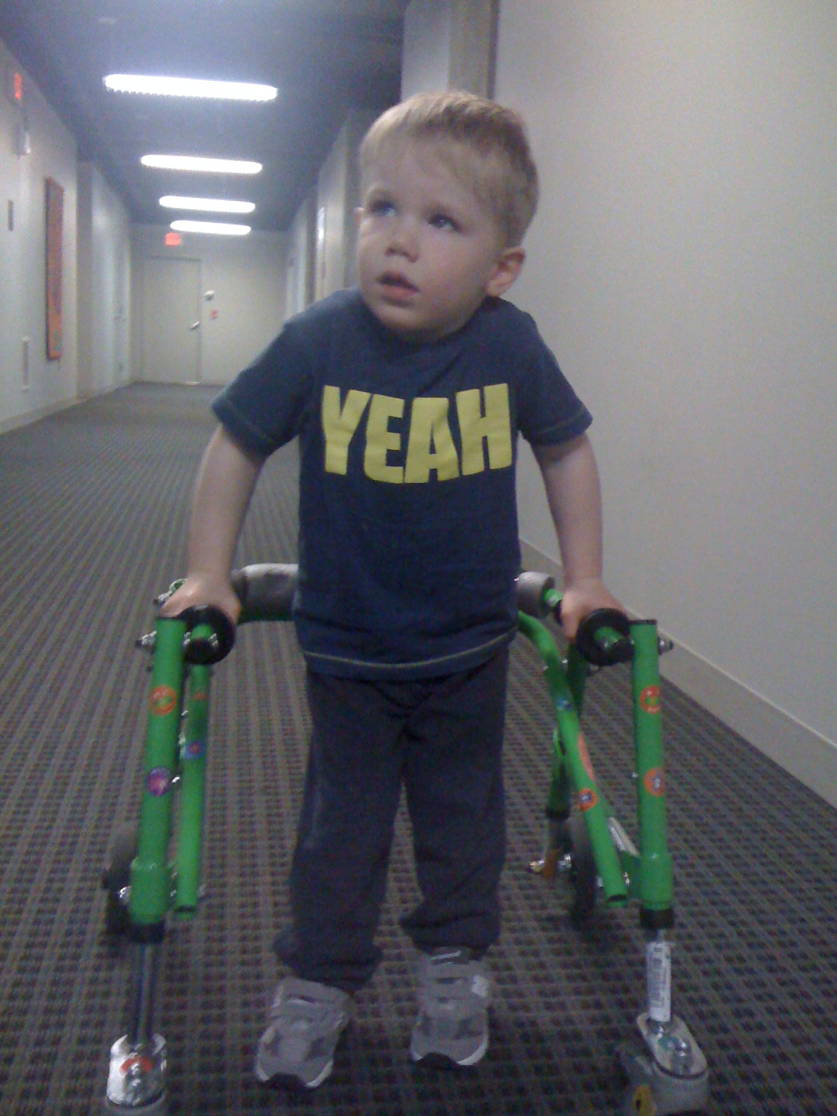 A great day at physio yesterday was followed by a not so great one today, Harry did not really want to cooperate in any way, I don’t want to make any excuses for him maybe he was just fed up and did not fancy it maybe it was something else but today was the first day I wanted to hurry up and get out. We walked back to the apartment forgetting about what had gone before because we were looking forward to relieving Harry from his concrete boots or casts. A warm bucket of water a pair of scissors and half hour later and Harry’s feet ankle and calf’s felt the cool American air once again. Then Harry had his first bath for a week and he loved it after the bath and once dressed Harry seemed to have a new lease of life shorn of his lead boots he was pulling up on to anything that he could and his feet amazingly stayed flat on the ground. To me it was if his feet had grown by a couple of inches where I am so used to seeing him on tip toes… amazing. After his nap we went the to St Louis version of Bluewater and bought Harry his first pair of real trainers, again it was an amazing moment seeing flat feet in a pair of trainer’s  We held Harry’s hand and he walked perfectly straight picking his feet up and no feet turning in or dragging as he step’s forward it would have meant nothing to anyone who watched him but to us it was a absolutely fantastic sight and feeling!!!!